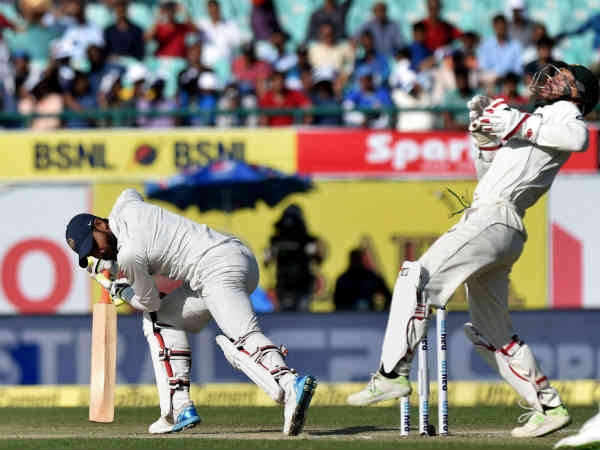 இதைத்தொடர்ந்து பேட் கம்மின்ஸ் பந்தில் ஸ்லிப்பில் நின்ற ஸ்மித்திடம் கேட்ச் கொடுத்து 31 ரன்களில் வெளியேறினார் விருதிமான் சாஹா. பந்தை அழுத்தமாக பிட்ச் செய்த கம்மின்ஸ் அதை சாஹாவின் தலையை நோக்கி இன் ஸ்விங் செய்தார். தலையை நோக்கி பாய்ந்து வந்த பந்திலிருந்து தப்பிக்க எக்குத்தப்பாக பேட்டை பிடித்தபடி குனிந்தார் சாஹா. பந்து பேட்டின் விளிம்பில் பட்டு எகிறியது. அதை சற்று பின்நோக்கி நகர்ந்து அற்புதமான ஒரு கேட்சாக மாற்றினார் ஸ்மித். பேலன்ஸ் தப்பி ஸ்மித் கீழே விழுந்தாலும் பந்தை கெட்டியாக பிடித்துக்கொண்டு சாஹாவை வழியனுப்பி வைத்தார்.