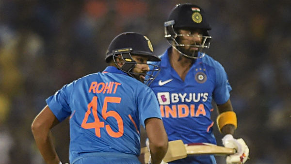 முதலில் களமிறங்கிய ரோகித் ஷர்மா மற்றும் கே.எல்.ராகுல் இருவரும் சிறப்பான ஆட்டத்தை வெளிப்படுத்தி பார்ட்னர்ஷிப்பில் 122 ரன்களை அடித்தனர். இதையடுத்து ரோகித் ஷர்மா 63 ரன்களிலும், கே.எல்.ராகுல் 77 ரன்களிலும் ஆட்டமிழந்தனர்.