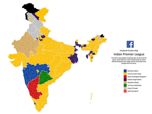 மகாராஷ்டிராவின் சில மாவட்டங்களில் கூட மும்பை அணியைவிட சென்னையை அதிகம்பேர் சப்போர்ட் செய்கின்றனர். தெலங்கானா முழுக்க ஹைதராபாத் அணியை சப்போர்ட் செய்கிது. வடகிழக்கு மாநிலங்களில் ஒரு சில மாவட்டங்கள் மட்டும் கொல்கத்தாவை ஆதரிக்கின்றன.