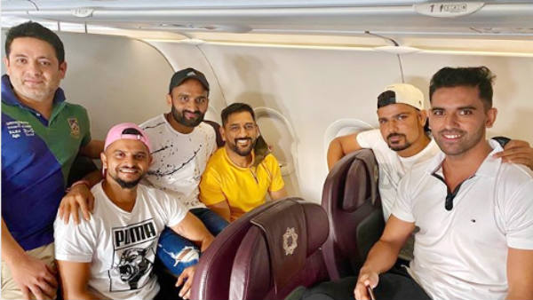 சுரேஷ் ரெய்னா, தோனி, தீபக் சாஹர், பியுஷ் சாவ்லா, கரன் சர்மா உள்ளிட்டோர் ஒரே விமானத்தில் சென்னை வந்து சேர்ந்தனர். அவர்கள் விமானத்தில் இருக்கும் புகைப்படம் வெளியாகி வைரல் ஆகி வருகிறது. சமூக வலைதளங்களில் ரசிகர்கள் அதை பகிர்ந்து வருகிறார்கள்.