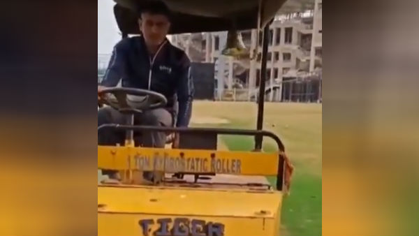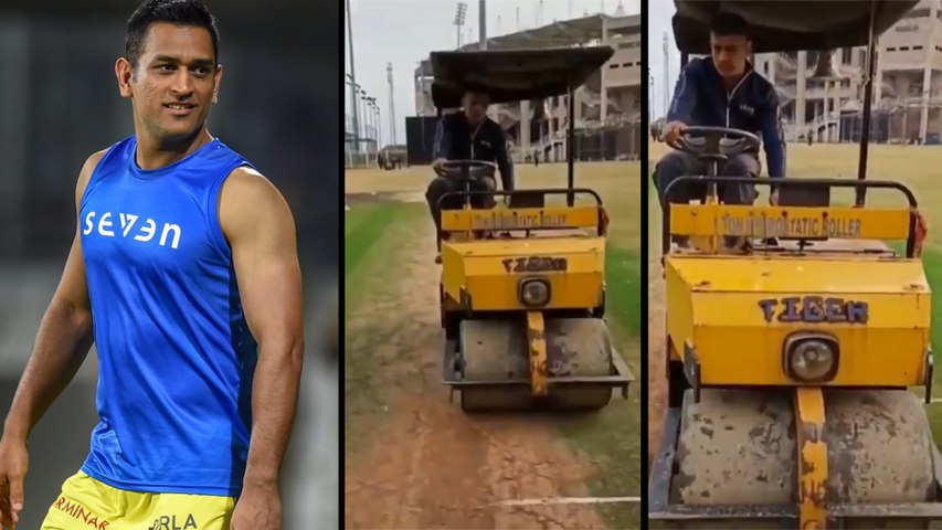 இந்த நிலையில், முந்தைய தினம் மைதானத்தில் பயிற்சி பிட்ச் தயார் செய்யப்பட்டு வந்த போது, அதற்கு பயன்படுத்தப்பட்ட பிட்ச் ரோலர் வாகனத்தை கண்ட தோனி, அதை தானும் செலுத்தினார். மெதுவாக நகரும் அந்த வாகனத்தை முன்னும், பின்னுமாக இயக்கினார்.