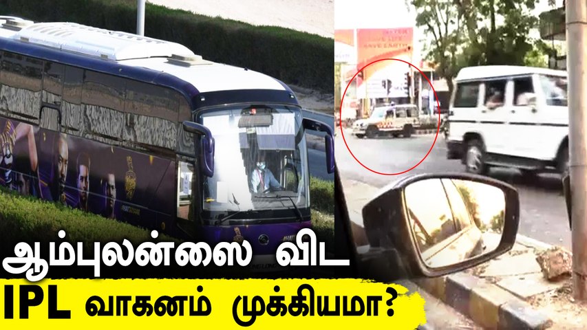 ஐபிஎல் தொடர் ஒத்திவைக்கப்படுவதற்கு முன்னர் வரை டெல்லி மற்றும் அகமதாபாத் நகரங்களில் நடைபெற்று வந்தது. இதில் அகமதாபாத் நகரத்தின் பஜ்ராபோல் எனும் இடத்தில் கொல்கத்தா அணி வீரர்கள இருந்த 3 பேருந்துகள் சென்றுள்ளன. அப்போது அவர்களின் பேருந்து செல்வதற்காக சாலையில் சென்றுகொண்டிருந்த அனைத்து வாகனங்களை போலீசார் நிறுத்திவைத்திருந்துள்ளனர். அதில் ஆம்புலன்ஸும் ஒன்று.