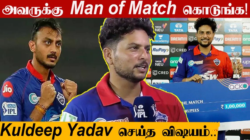 இந்தப் போட்டியில் ஆட்டநாயகன் விருது வென்ற குல்தீப் யாதவ், இந்த விருதுக்கு நன்றி. ஆனால் இந்த விருதை அக்சர் பட்டேலுடன் பகிர்ந்து கொள்ள விரும்புகிறேன். அவர் இந்த ஆட்டத்தில் முக்கிய விக்கெட்டுகளை வீழ்த்தினார். இந்த சீசனில் எப்படி பந்து வீச வேண்டும் என்ற தெளிவோடு இருக்கிறேன். தவறாக பந்துவீசினால் கூட அது பற்றி கவலைப்படாமல் அடுத்த பந்தை சரியாக வீச முயற்சிக்கிறேன் என்று குல்தீப் கூறினார்.