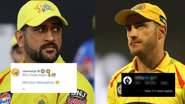 இதனால் பெரும் ஏமாற்றமடைந்த ரசிகர்கள் சென்னை அணி மீது கடும் விமர்சனங்களை முன்வைத்தனர். இதே போல டூப்ளசிஸே, தனது கிரிக்கெட் வாழ்கையில் முக்கிய அங்கமாக இருந்த சிஎஸ்கே அணிக்கும், ரசிகர்களுக்கும் நன்றி என மனம் உருகி வீடியோ வெளியிட்டிருந்தார்.
