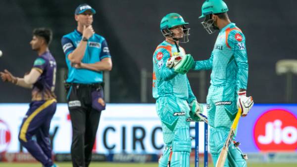 தொடக்க வீரராக குயின்டன் டி காக், கேஎல் ராகுல் களமிறங்கினர். ஆனால் ஆட்டத்தின் தொடக்கத்திலேயே கேப்டன் கேஎல் ராகுல் டைமண்ட் டக் அவுட் ஆனார். அதாவது ஒரு பந்தை கூட எதிர்கொள்ளாமல் ரன் அவுட்டில் சிக்கி ஆட்டமிழந்தால் அதன் பெயர் டைமண்ட் டக். இதனையடுத்து குயின்டன் டி காக், தீபக் ஹூடா ஜோடி அதிரடியாக விளையாடி அணியை சரிவிலிருந்து மீட்டனர்.