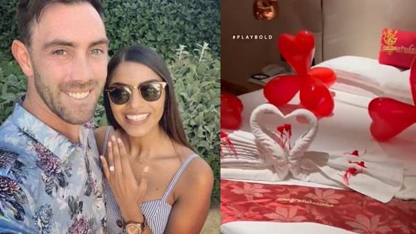 மேக்ஸ்வெல் - வினி ராமனை வரவேற்க ஆர்சிபி அணி சார்பில் அதிர்ச்சி வைத்தியம் தரப்பட்டுள்ளது. அணியின் சமூக வலைதளப்பக்கங்களில் வீடியோ ஒன்று வெளியிடப்பட்டுள்ளது. அதில் அவர்கள் இருவரும் தங்கவுள்ள அறையை காண்பித்துள்ளனர். புது ஜோடிக்காக ஸ்பெஷலாக ஏற்பாடு செய்யப்பட்டுள்ள படுக்கைகள், அலங்காரங்கள் ஆகியவை காண்பிக்கப்பட்டுள்ளன. மேலும் அவர்களின் புகைப்படங்கள், உண்பதற்கு திண்பண்டங்களும் ஏற்பாடு செய்யப்பட்டிருக்கிறது.