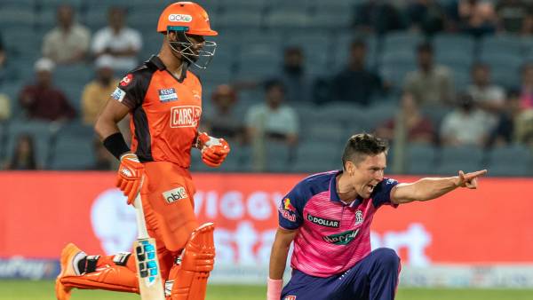 பெரிதும் எதிர்பார்க்கப்பட்ட ராகுல் திரிபாதி மற்றும் அதிரடி வீரர் பூரான் டக் அவுட்டாக, அபிஷேக் சர்மா சொற்ப ரன்களில் வெளியேற, பவர்பிளேவில் ஐதராபாத் அணி 12 ரன்களுக்கு 3 விக்கெட்டுகளை மட்டுமே எடுத்தது. இது ஐபிஎல் வரலாற்றில் பவர்பிளேவில் குறைந்தபட்ச ஸ்கோராகும். இறுதியில் ஏய்டன் மார்க்கரம் 41 பந்துகளில் 57 ரன்களும், வாசிங்டன் சுந்தர் 14 பந்துகளில் 40 ரன்கள் குவித்தார். இதனால் ஐதராபாத் அணி 7 விக்கெட் இழப்பிற்கு 149 ரன்கள் எடுத்து தோல்வியை தழுவியது. ராஜஸ்தான் பந்துவீச்சு தரப்பில் சாஹல் 3 விக்கெட்டுகளை வீழ்த்தினார். இது டி20 கிரிக்கெட்டில் சாஹல் வீசிய 250வது விக்கெட் ஆகும்.