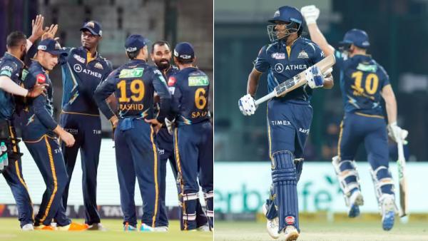 எனினும் டெல்லி வீரர் ஆன்ரிச் நோக்கியா அபாரமாக பந்துவீசி, சாஹாவை 14 ரன்களிலும், சுப்மன் கில் 14 ரன்களிலும் வெளியேறினர். இதே போன்று கேப்டன் ஹர்திக் பாண்டியா 5 ரன்களில் வெளியேற 54 ரன்களுக்கு 3 விக்கெட் இழந்து குஜராத் அணி தடுமாறியது. அப்போது களத்தில் ஜோடி சேர்ந்த 2 தமிழக வீரரான சாய் சுதர்சன் மற்றும் விஜய் சங்கர் நிதானமாக விளையாடி ரன்களை சேர்த்தனர்.