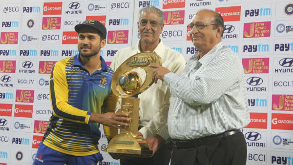 இறுதிப்போட்டியில் முதலில் பேட் செய்த கர்நாடகா அணி 5 விக்கெட்டுகள் இழப்பிற்கு 180 ரன்களை குவித்தது. கேப்டன் மணிஷ் பாண்டே அடித்த 60 ரன்கள் அணியின் ரன் குவிப்பிற்கு முக்கிய காரணமாக இருந்தது. 45 பால்களில் இவர் 60 ரன்களை அடித்தார்.