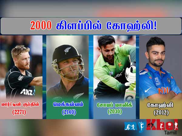 விராட் கோஹ்லி 60 போட்டிகளில் (56 இன்னிங்ஸ்) விளையாடி இந்த சாதனையை புரிந்துள்ளார். அவரது பேட்டிங் சராசரி 49.07 ஆகும். இவர் 18 முறை அரை சதம் அடித்துள்ளார். இவருக்கு முன்னதாக மெக்கல்லம் 71 போட்டிகளில் 2000 ரன்களை கடந்ததே சாதனையாகும். கோஹ்லி அதனை முறியடித்தார்.