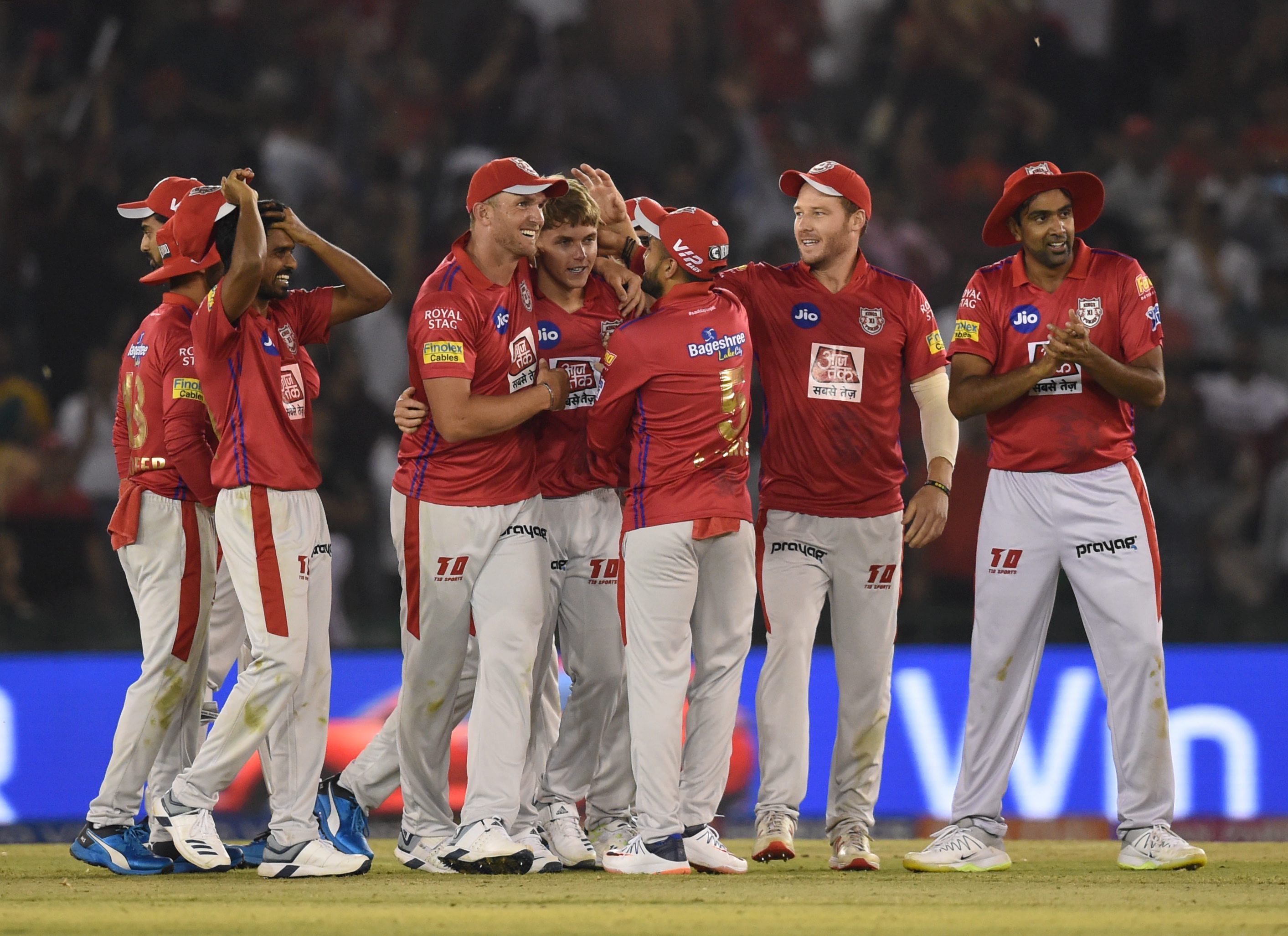 அடுத்து பேட்டிங் ஆடிய பஞ்சாப் அணியில் கெயில் 16 ரன்களில் கேட்ச் கொடுத்து ஆட்டமிழந்தார். பின்னர் ஜோடி சேர்ந்த ராகுல் - மாயங்க் அகர்வால் 114 ரன்கள் சேர்த்தனர். மாயங்க் அகர்வால் 55 ரன்கள் அடித்து ஆட்டமிழந்தார்.