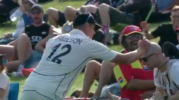 இந்நிலையில் பௌலர் கைல் ஜேமீசன் மைதானத்தில் ரசிகர் ஒருவரின் மொட்டைத் தலையில் ஆட்டோகிராப் செய்தது அருகில் இருந்த ரசிகர்களை சிரிப்பில் ஆழ்த்தியது. இதுமட்டுமின்றி சமூக வலைதளத்திலும் வைரலாகியுள்ளது. முதல் இன்னிங்சில் வெறுமனே 69 ரன்களை மட்டுமே கொடுத்து 5 விக்கெட்டுகளை ஜேமீசன் வீழ்த்தியுள்ளார்.