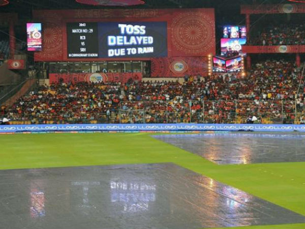ஆனால், பெங்களூரு மற்றும் அதன் சுற்றுவட்டாரங்களில் சுமார் 5 கிலோ மீட்டர் தொலைவுக்கு பலத்த மழை பெய்து வருகிறது. அதன் காரணமாக போட்டி இதுவரை தொடங்கப்படவில்லை.
