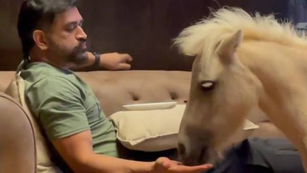 தற்போது ஐ.பி.எல். தொடருக்கு முன் தன் சொகுசு வீட்டில் தோனி ஓய்வில் உள்ளார். அப்போது நடு வீட்டில் நாயுடன் விளையாடி பார்த்து இருப்போம், இல்லை பூணையுடன் விளையாடி பார்த்திருப்போம். ஆனால் தல தோனி வித்தியாசமாக குதிரையை நடு வீட்டில் வைத்து விளையாடியுள்ளார்.