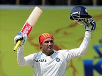 முன்னதாக வீரேந்திர ஷேவாக் முச்சதம் அடித்து புதிய சாதனை படைக்கும் வாய்ப்பை தவற விட்டார். இதற்கு முன்பு பிராட்மேன், லாரா ஆகியோர் 2 முச்சதங்களை எடுத்து சாதனை படைத்துள்ளனர். அதேபோல ஷேவாக்கும் 2 முச்சதங்களைப் போட்டுள்ளார். இன்று மூன்றாவது முச்சதம் போட்டால் புதிய உலக சாதனையாக அது அமைந்திருக்கும்.