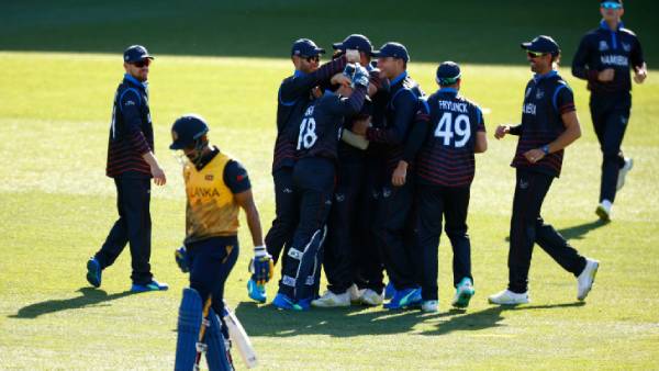 ஒரு கட்டத்தில் நமிபியா அணி 96 ரன்களுக்கு 6 விக்கெட் இழந்து தடுமாறிய போது, அப்போது களத்துக்கு வந்த ஜென் பிராலிங், மற்றும் ஜேஜே ஸ்மிட் அதிரடியாக விளையாடி ரன்களை சேர்த்தனர். சிறப்பாக விளையாடிய பிராலிங், 28 பந்தில் 44 ரன்கள் விளாச, ஸ்மிட் 16 பந்தில் 31 ரன்கள் விளாசினார். இதனால் 20 ஓவர் முடிவில் நமிபியா அணி 163 ரன்களுக்கு 7 விக்கெட்டுகளை இழந்தது. கடைசி 5 ஓவரில் அந்த அணி 68 ரன்களை விளாசியது. இலங்கை வீரர் பிரமோத் 2 விக்கெட்டை வீழ்த்தினார்.