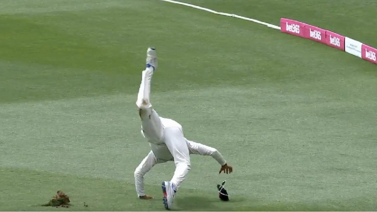 அதாவது மூன்றாவது நாள் ஆட்டத்தில் ஆஸ்திரேலிய அணி தங்களுடைய முதல் இன்னிங்ஸில் விளையாடிக் கொண்டிருந்தது. அப்போது ஆஸ்திரேலிய அணி 164 ரன்கள் இரண்டு விக்கெட் இழந்து இருந்தபோது ஸ்மித், சஜித் விசிய பந்தை தூக்கி அடித்தார். அது பவுண்டரியை நோக்கி சென்றது. அப்போது பந்தை தடுப்பதற்காக ஓடி வந்த பாகிஸ்தான் வீரர் ஷயிம் அயூப் முயற்சி செய்தபோது மைதானத்தில் புல் தரை கழன்று அவருடைய காலில் சிக்கியது. இதில் தடுமாறி ஆயூப் கீழே விழுந்தார்.