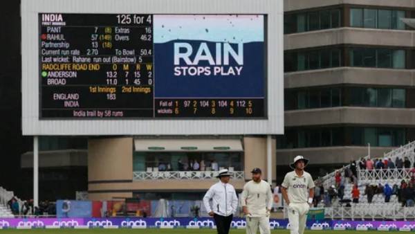 இந்நிலையில், 46வது ஓவர் வீசப்பட்ட போது, ஆட்டம் மழையால் பாதிக்கப்பட்டது. நீண்ட நேரம் மழை பெய்ததால், ஆட்டம் மீண்டும் தொடங்குமா என்ற சந்தேகம் ஏற்பட்டது. எனினும், கிட்டத்தட்ட 2 மணி நேரம் கழித்து மழை நின்று, மீண்டும் ஆட்டம் துவங்கப்பட்டு 2 பந்துகளே வீசப்பட்ட நிலையில், மீண்டும் போட்டி மழையால் பாதிக்கப்பட்டது. இதைத் தொடர்ந்து மழை விடாமல் பெய்த நிலையில், 2ம் நாள் ஆட்டம் முடிவுக்கு வந்தது. இந்திய அணி 46.4வது ஓவரில் 4 விக்கெட் இழப்பிற்கு 125 ரன்கள் எடுத்துள்ளது. லோகேஷ் ராகுல் 57 ரன்களுடனும், ரிஷப் பண்ட் 7 ரன்களுடனும் களத்தில் உள்ளனர். நாளை (ஆக.6) பிற்பகல் 3:30 மணிக்கு மூன்றாம் நாள் ஆட்டம் தொடங்கி நடைபெறும் என்பது குறிப்பிடத்தக்கது.