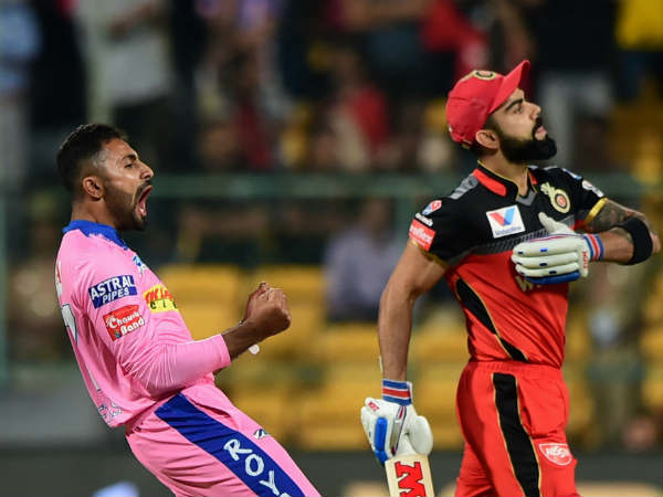 ஆனால்.. 2வது ஓவரில் கோலி ஆட்டமிழந்தார். அதற்கு அடுத்த பந்தில் டி வில்லியர்சும், ஸ்டோய்னிசும் தொடர்ந்து ஆட்டமிழந்தனர். அந்த ஓவரை வீசிய ஸ்ரேயாஸ் கோபால் ஹாட்ரிக் எடுத்து பெங்களூரை திணறடித்தார்.
