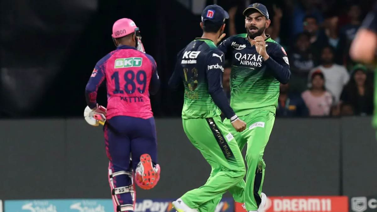 இதனையடுத்து டாஸ் வென்ற ராஜஸ்தான் கேப்டன் சஞ்சு சாம்சன் பந்துவீச்சை தேர்வு செய்தார். தொடக்க வீரராக களமிறங்கிய விராட் கோலி டக் அவுட் ஆனார். ஷாபாஸ் அகமது 2 ரன்களில் வெளியேற 12 ரன்களுக்கு 2 விக்கெட் இழந்தது ஆர்சிபி தடுமாறியது.