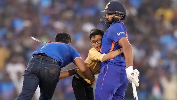 இந்நிலையில் இந்த போட்டியின் போது சுவாரஸ்ய சம்பவம் அரங்கேறியது. ஆட்டத்தின் 10வது ஓவரின் போது ரோகித் சர்மா 37 ரன்களுடன் விளையாடி வந்தார். அப்போது திடீரென களத்திற்கு உள்ளே நுழைந்த சிறுவன் ஒருவன் ரோகித் சர்மாவை நோக்கி ஓடி வந்து கட்டியணைத்துக்கொண்டார்.