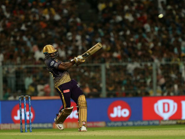 17.1, 17.3 ஓவரில் ரசல் இரண்டு சிக்ஸர்களை விளாசினார். இந்த இரண்டு சிக்ஸர்களையும் ஒரே மாதிரி அடித்தார். அரை சதம் அடிப்பார் என எதிர்பார்க்கப்பட்ட நிலையில் கிறிஸ் மோரிஸ் பந்தில் ஆட்டமிழந்தார்.