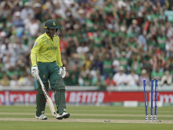 சிறிய குழப்பத்தால், கேட்ச் வாய்ப்பில் தப்பிய டி காக், ரன் அவுட் ஆனார். இதனால், தென்னாப்பிரிக்கா அணிக்கு சேஸிங்கில் பெரும் பின்னடைவு ஏற்பட்டது. தன் முதல் விக்கெட்டை மிக மோசமான முறையில் இழந்த தென்னாப்பிரிக்கா, அடுத்து வந்த வீரர்கள் ரன் குவித்தாலும், ரன் ரேட்டை சமாளிக்க முடியாமல் திணறியது.