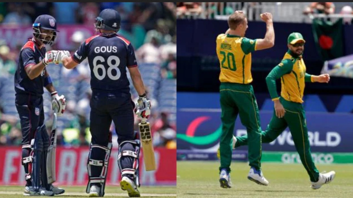 19வது ஓவரில் 2 ரன்கள் மட்டுமே சேர்க்கப்பட்டதால், கடைசி ஓவரில் அமெரிக்கா வெற்றிக்கு 26 ரன்கள் தேவையாக இருந்தது. கடைசி ஓவரை வீச நார்கியே அழைக்கப்பட்டார். அதில் அமெரிக்கா அணி 7 ரன்களை மட்டுமே சேர்த்த நிலையில், தென்னாப்பிரிக்கா அணி 18 ரன்கள் வித்தியாசத்தில அபார வெற்றியை பெற்றது. கடைசி வரை களத்தில் இருந்த கெளஸ் 47 பந்துகளில் 5 சிக்ஸ், 5 பவுண்டரி உட்பட 80 ரன்களை விளாசினார். தென்னாப்பிரிக்கா அணி தரப்பில் ரபாடா 4 ஓவர்கள் வீசி 18 ரன்களை மட்டுமே விட்டுக் கொடுத்து 3 விக்கெட்டுகளை சாய்த்தார்.
