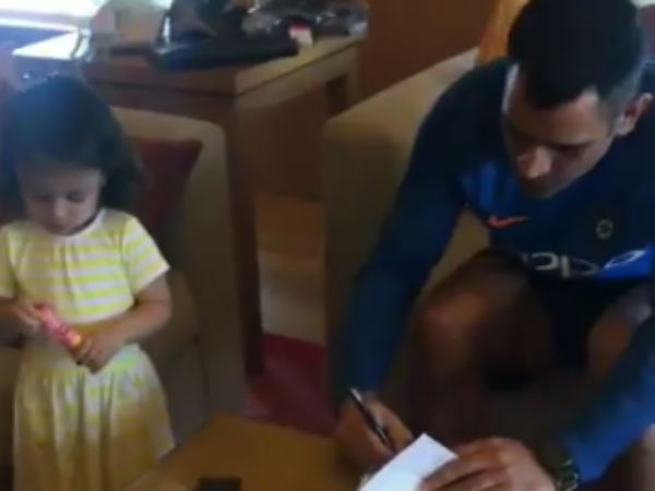டோணி கையெழுத்து போடும் வீடியோவில் அவரிடம் சாக்ஷி ''திரும்ப உன் வீட்டிற்கு போயிட்டியா.'' என்று கேட்கிறார். மேலும் சாக்ஷி ''போன வருஷ ஐபிஎல் போட்டி எதையுமே நான் பார்க்கல'' என்றும் வருத்தமாக ஆங்கிலத்தில் குறிப்பிட்டு இருக்கிறார். அப்போது டோணியின் மகள் ஷிவா பக்கத்தில் சமத்தாக நின்று கொண்டு இருக்கிறாள்.