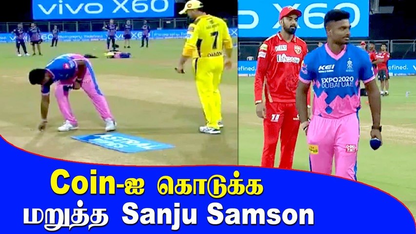 இந்நிலையில் இன்றைய போட்டியில் தோனிக்கு எதிராக டாஸ் வென்றுள்ள ராஜஸ்தான் ராயல்ஸ் அணி வீரர் சஞ்சு சாம்சன் டாஸ் போட பயன்படுத்திய நாணயத்தை எடுத்து தனது பேக்கட்டில் போட்டுக் கொண்டார். அவரது இந்த செயல் டாஸ் போட்ட அம்பயரை அதிர்ச்சிக்குள்ளாக்கியது.