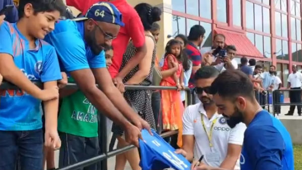 ரசிகர்களுடன் செல்பி எடுத்துக கொண்ட கோலி, அவர்களின் டி ஷர்ட்டிலும், தொப்பிகளிலும் ஆட்டோகிராப் போட்டார். இதுபற்றி பிசிசிஐ தனது ட்விட்டரில், ஒரு செய்தியை வெளியிட்டு இருக்கிறது.