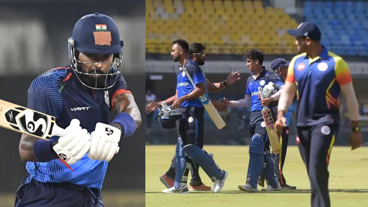 அவர் இந்தப் போட்டியில் விளையாடாத நிலையில் சௌராஷ்டிரா அணி இமாலய இலக்கை நிர்ணயித்து பரோடா அணியை வீழ்த்தியது. இந்த போட்டியில் சௌராஷ்ட்ரா அணியின் துவக்க வீரர்கள் ஹர்விக் தேசாய் 39 பந்துகளில் 76 ரன்கள் சேர்த்தார். அவர் 9 ஃபோர் மற்றும் 4 சிக்ஸ் அடித்தார்.