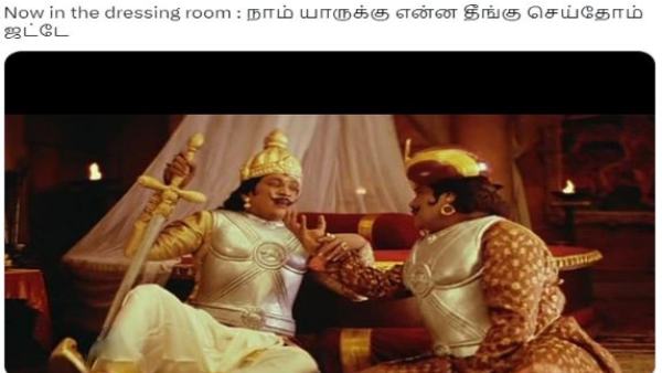 ஏற்கனவே சிவம் தூபே அடிக்காமல் டாட் பால்கள் ஆடி இருந்த நிலையில், தோனி பேட்டிங் வரிசையில் 8வது வீரராக களமிறங்கினார். அதனை குறிப்பிட்டு, அண்ணாமலை படத்தில் ரஜினியிடம் மனோரமா பேசும் ஒரு வசனத்தை பட்டி டிங்கரிங் செய்து, இப்டி எட்டாவதா இறங்கத்தான் நெட் பவுலர்ஸ அந்த அடி அடிச்சியா ராசா என்று தோனியை ரசிகர்கள் கேட்பது போல் உருவாக்கப்பட்ட மீம் அதிகமாக பகிரப்பட்டு வருகிறது.