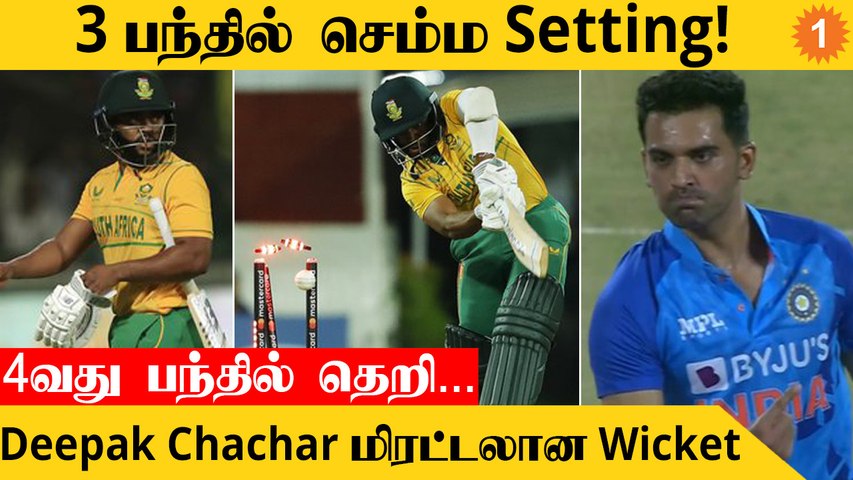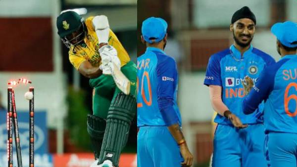 இந்த நிலையில், பும்ராவும் இல்லாத நிலையில், ஆர்ஸ்தீப் சிங் மற்றும் சிஎஸ்கே வீரர் தீபக் சாஹரும் புது பந்தில் ஓவர்களை இரு முனையிலும் வீசினர். தீபக் சாஹர் வழக்கம் போல் பந்துகளை அவுட் ஸ்விங் செய்து தென்னாப்பிரிக்க வீரர்களுக்கு நெருக்கடி அளித்தார். இந்த நிலையில் கடைசி பந்தில் ஒரு இன் ஸ்விங் வீச, அது பெவுமா ஸ்டம்பை பதம் பார்த்தது.