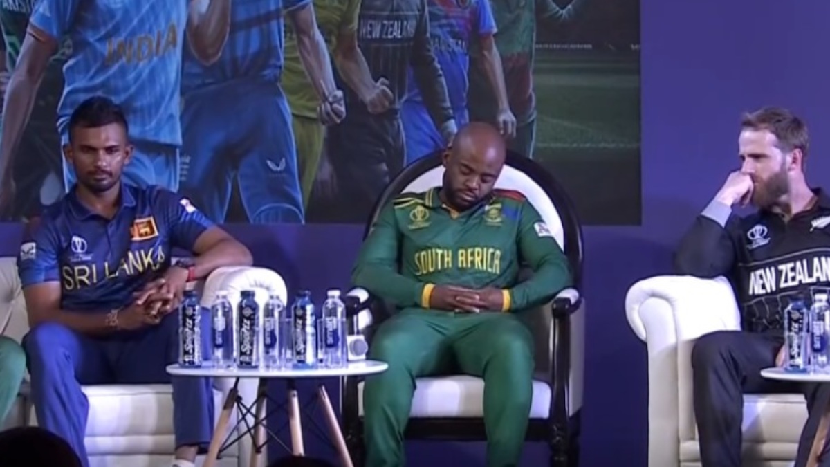 சில கேப்டன்கள் இரண்டு பேர் சேர்ந்து அமரும் சோபாவில் அமர்ந்து இருந்தனர். தென்னாப்பிரிக்கா அணி கேப்டன் டெம்பா பவுமா தனியான நாற்காலி ஒன்றில் அமர்ந்து இருந்தார். அவர் அதில் உட்கார்ந்த சில மணி நேரத்தில் எல்லாம் தூங்கத் துவங்கி விட்டார்.