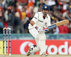 இதையடுத்து கம்பீரும், டிராவிடும் இணைந்து விளையாடத் தொடங்கினர். கடந்த சில போட்டிகளில் விளையாடாமல் கடும் விமர்சனத்திற்குள்ளாகியுள்ள டிராவிட் இன்றைய போட்டியில் சற்றே சிறப்பான ஆட்டத்தைக் காட்டினார்.