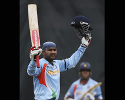 படு சிறப்பாக விளையாடிய அவர் 82 பந்துகளில் 91 ரன்களைக் குவித்தார். இதில் ஒரு சிக்சரும், 14 பவுண்டரிகளும் அடக்கம். மறு முனையில் கம்பீரும் சிறப்பாக ஆடினார். ஷேவாக் அடித்து ஆட இடம் கொடுத்து, நிதானமாக ஆடிய கம்பீர் 92 பந்துகளில் 52 ரன்களைக் குவித்தார்.