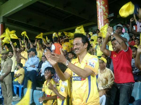இந்த போட்டியை திமுக பொருளாளர் மு.க.ஸ்டாலின் தனது குடும்பத்தோடு கண்டுகளித்தார். அவர் சிஎஸ்கே அணியின் சீருடையான மஞ்சள் நிற சட்டையை அணிந்து கொண்டு, மஞ்சள் கொடியை ஆட்டியபடி இருந்ததை நேரடி ஒளிபரப்பில் பல கோடி ரசிகர்கள் பார்த்தனர்.