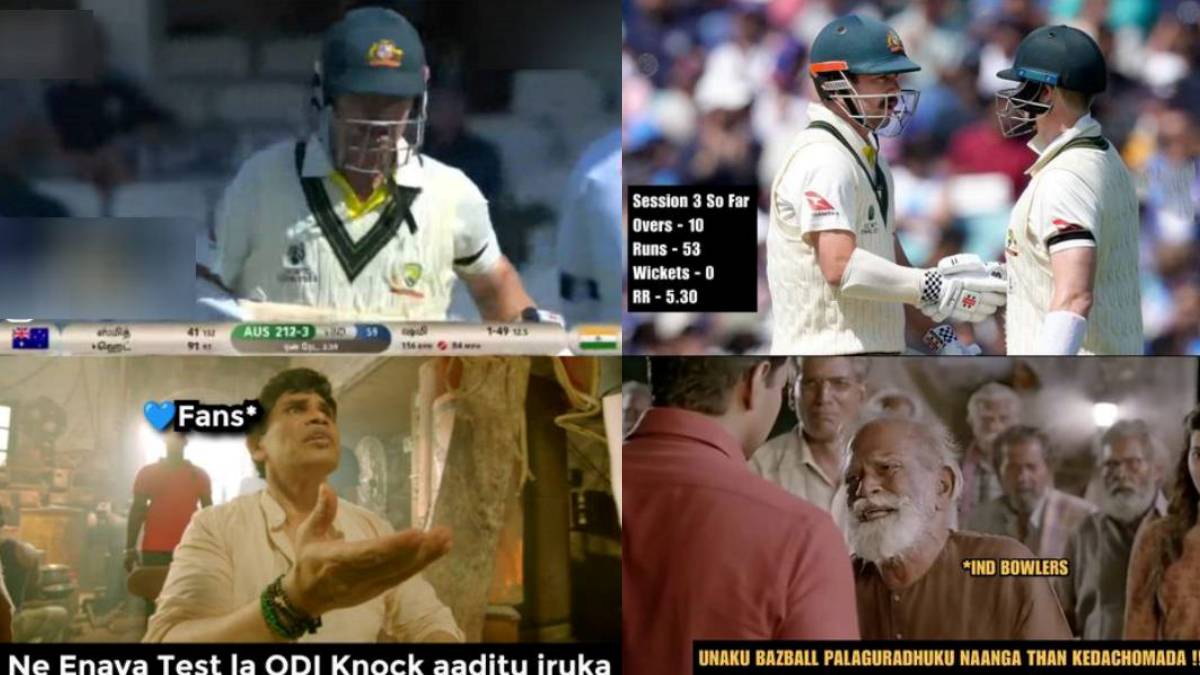 நேற்றைய நாளில் களமிறங்கியது முதலே ஆஸி. அணியின் டிராவிஸ் ஹெட் அதிரடியாக விளையாடினார். இதனால் விரைவாக சதமும் விளாசி அசத்தினார். ஆட்ட நேர முடிவில் 156 பந்துகளில் 146 ரன்கள் விளாசி களத்தில் இருந்தார். இதனை நானும் ரவுடி தான் படத்தில், "அள்ளிப்போட்டு கொண்டு வந்தேன் சார்" என்று விஜய் சேதுபதி சொல்லுவார். அதனை மாற்றி, "என்னய்யா டெஸ்ட்-ல ஒருநாள் நாக் ஆடிட்டு இருக்க" என்று உருவாக்கப்பட்டுள்ள மீம் மரண மாஸ்.