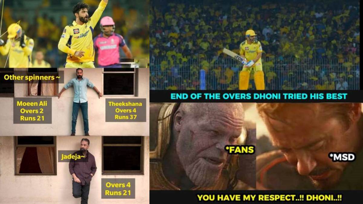 கடைசி ஓவரில் சிஎஸ்கே அணியின் வெற்றிக்கு 21 ரன்கள் தேவைப்பட்ட நிலையில், தோனி - ஜடேஜா இணைந்து 18 ரன்கள் சேர்த்தனர். அதிலும் தோனி அடுத்தடுத்து பந்துகளில் சிக்சர்களை விளாசினார். அதனை வைத்து ராஜஸ்தான் ராயல்ஸ் அணியினர், சுப்ரமணியபுரம் படத்தில் வரும் ஜெய் பேசும், "சாவு பயத்த காட்டிட்டான் பரமா" என்று சொல்வது போல் உருவாக்கப்பட்ட மீம் வெறித்தனம்.