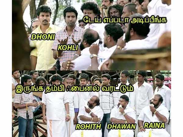 ஆனால் இப்படிக் கலாய்த்துள்ளவர்களைச் சொல்லியும் குற்றமில்லை. காரணம், ரோஹித் சர்மாவும் சரி, ஷிகர் தவானும் சரி, சுரேஷ் ரெய்னாவும் சரி இன்னும் விளையாடவே இல்லை.
