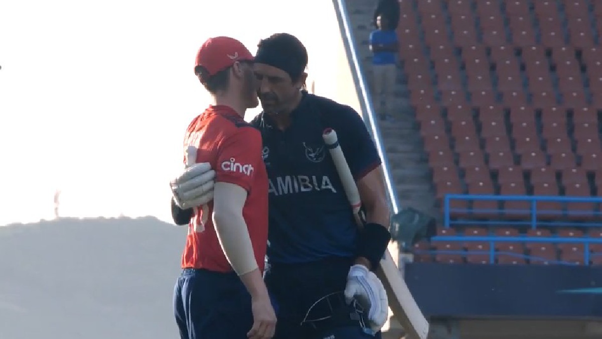 இதனால் போட்டி இந்திய நேரப்படி இரவு ஒரு மணிக்கு மேல் தொடங்கப்பட்டது. ஆட்டம் 10 ஓவராக குறைக்கப்பட டாஸ் வென்ற நமிபியா முதலில் பந்துவீச்சை தேர்வு செய்தது. இதை அடுத்து களமிறங்கிய இங்கிலாந்து அணியில் கேப்டன் ஜாஸ் பட்லர் டக் அவுட்டாக, பின் சால்ட் 11 ரன்கள் எடுத்தார். இதன் அடுத்து அதிரடி வீரர் ஜானி பாரிஸ்டோ 18 பந்துகளில் 31 ரன்கள் விளாசினார்.