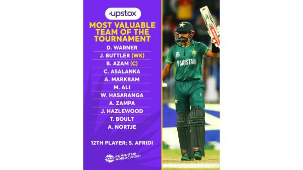 இந்த நிலையில் டி-20 உலகக் கோப்பை தொடரில் சிறந்து விளங்கிய வீரர்களை கொண்ட அணியை ஐ.சி.சி.அதிகாரப்பூர்வமாக அறிவித்துள்ளது. அதன் படி தொடக்க வீரர்களாக டேவிட் வார்னர் (ஆஸ்திரேலியா), ஜாஸ் பட்லர்(இங்கிலாந்து) தேர்வாகியுள்ளனர். இந்த அணியின் கேப்டனாக பாகிஸ்தான் வீரர் பாபர் அசாம் நியமிக்கப்பட்டுள்ளார்.