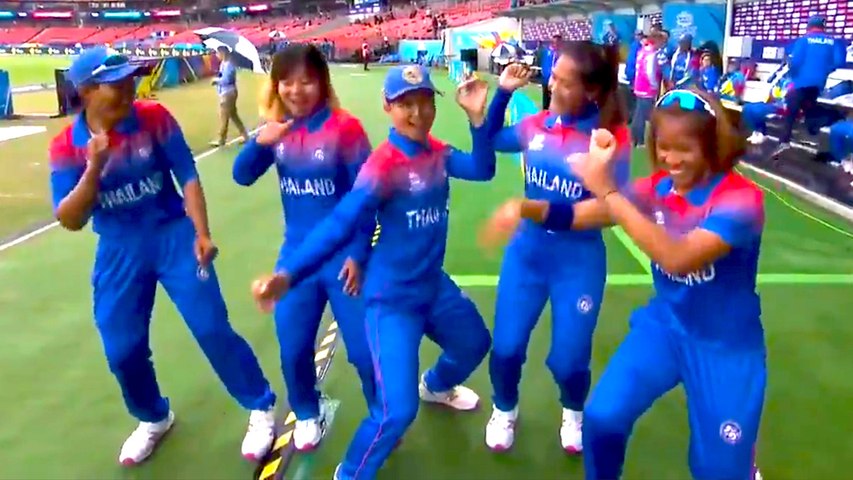 விடுமா ஐசிசி.. உடனே இந்த வீடியோவை தனது டிவிட்டரில் போட்டு கலக்கி விட்டது. அதிலும் ஒரு வீராங்கனை தரையில் பல்டியெல்லாம் அடித்து அசத்தினார். கிட்டத்தட்ட எல்லோருமே "பிரபு தேவி"களாக மாறி கலக்கியிருந்தனர். மழையால் ஆட்டம் கைவிடப்பட்டாலும் தாய்லாந்து வீராங்கனைகளின் இந்த குத்தாட்டம் அனைவரையும் கவர்ந்தது. மேலும் ஐசிசி பகிர்ந்த இந்த வீடியோ, சமூகவலைதளங்களில் வைரலானது.