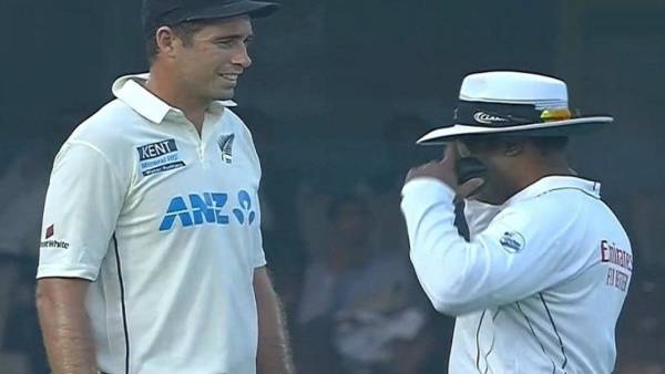 போதிய வெளிச்சம் இல்லாதது குறித்து நடுவர் நிதின் மேனன், நியூசிலாந்து வீரர் டிம் சவுதியிடம் கூறினார். அப்போது நடுவர் நிதின் மேனன் கூலிங் கிளாஸ் அணிந்திருந்தார். இதனை பார்த்த சவுதி, எதுக்கும் கூலிங் கிளாஸை கழற்றி பாருங்கள், அப்போது வெளிச்சம் தெரியும் என கிண்டலாக கூறினார். உடனடியாக நடுவரும் கண்ணாடியை கழற்றிவிட்டு, இப்போதும் வெளிச்சமாக இல்லை என்று நகைச்சுவையாக கூறினார்.