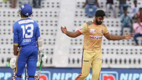 இந்தப் போட்டியில், சேப்பாக் அணி நிர்ணயித்த 128 ரன்கள் இலக்கை நோக்கி ஆடத் துவங்கியது தூத்துக்குடி அணி. முதல் ஓவரை விஜய் ஷங்கர் வீசினார். தான் வீசிய முதல் பந்திலேயே ஆகாஷ் சிவன் விக்கெட்டை வீழ்த்தினார்.