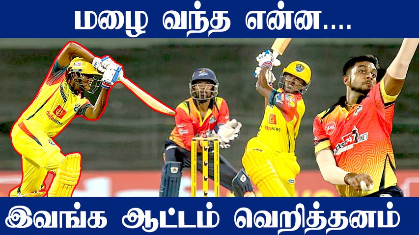 ஒன் டவுன் வீரராக களமிறங்கிய சாய் சுதர்சன் சும்மா சுழற்றி சுழற்றி விளாச ஆரம்பித்தார். 43 பந்துகளில் 87 ரன்களை விளாசினார். இதில், 8 பவுண்டரிகளும், 5 சிக்ஸர்களும் அடங்கும். கோவை அணி 18 ஓவரில் 5 விக்கெட் இழப்பிற்கு 168 ரன்கள் எடுத்திருந்த போது, மழை குறுக்கிட்டதால் ஆட்டம் தடைப்பட்டது. சென்னையில் கடந்த நான்கு நாட்களாகவே மாலை நேரத்தில் மழை பெய்து வருகிறது. அதுவும் இடி மின்னலுடன் வெளுத்து வருகிறது. அதன் நீட்சியாக நேற்று மழை மீண்டும் ஆட்டத்தைப் போட, அருமையான மேட்ச் ஒன்று வீணாய் போனது. அதன்பிறகு கடைசி வரை போட்டியை தொடங்கவே முடியவில்லை. இதனால், முடிவு ஏதுமின்றி ஆட்டம் கைவிடப்பட்டது.