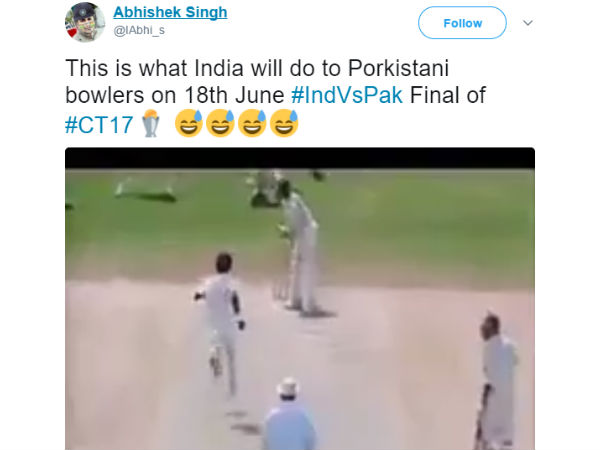 This is what India will do to Porkistani bowlers on 18th June #IndVsPak Final of #CT17 😅😅😅😅 pic.twitter.com/ldm8EU3wOV