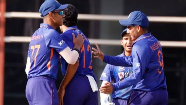 முதல் விக்கெட்டுக்கு இந்த ஜோடி 40 ரன்கள் சேர்த்தது. ஹர்னூர் சிங் 15 ரன்களில் ஆட்டமிழக்க,கேப்டன் நிஷாந்த் 15 ரன்களில் வெளியேறினார். இதனையடுத்து ஜோடி சேர்ந்த ஆங்கிரிஷ், ராஜ் பவா ஜோடி, உகாண்டா பந்துவீச்சை உப்புக்கண்டம் போட்டனர். இவர்களது அதிரடியால் ஸ்கோர் ராக்கெட் வேகத்துக்கு உயர்ந்தது.