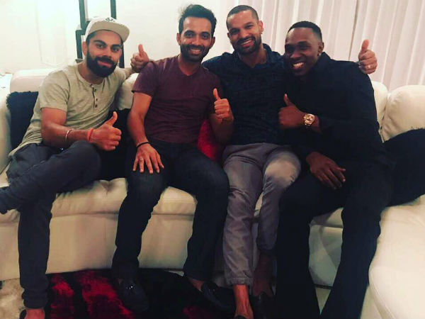 அதில் இரு வீரர்களும் டோணி, ஹார்த்திக் பாண்ட்யா மற்றும் ரிஷப் பந்த் ஆகியோருடன் பேசிக் கொண்டிருப்பது போன்ற படங்களும் இடம்பெற்றிருந்தன. இந்நிலையில் பிராவோ வீட்டில் விராத் கோஹ்லி, ரஹானே, ஷிவான் ஆகியோர் ஓய்வு எடுத்ததாக புகைப்படம் ஒன்று வெளியானது.